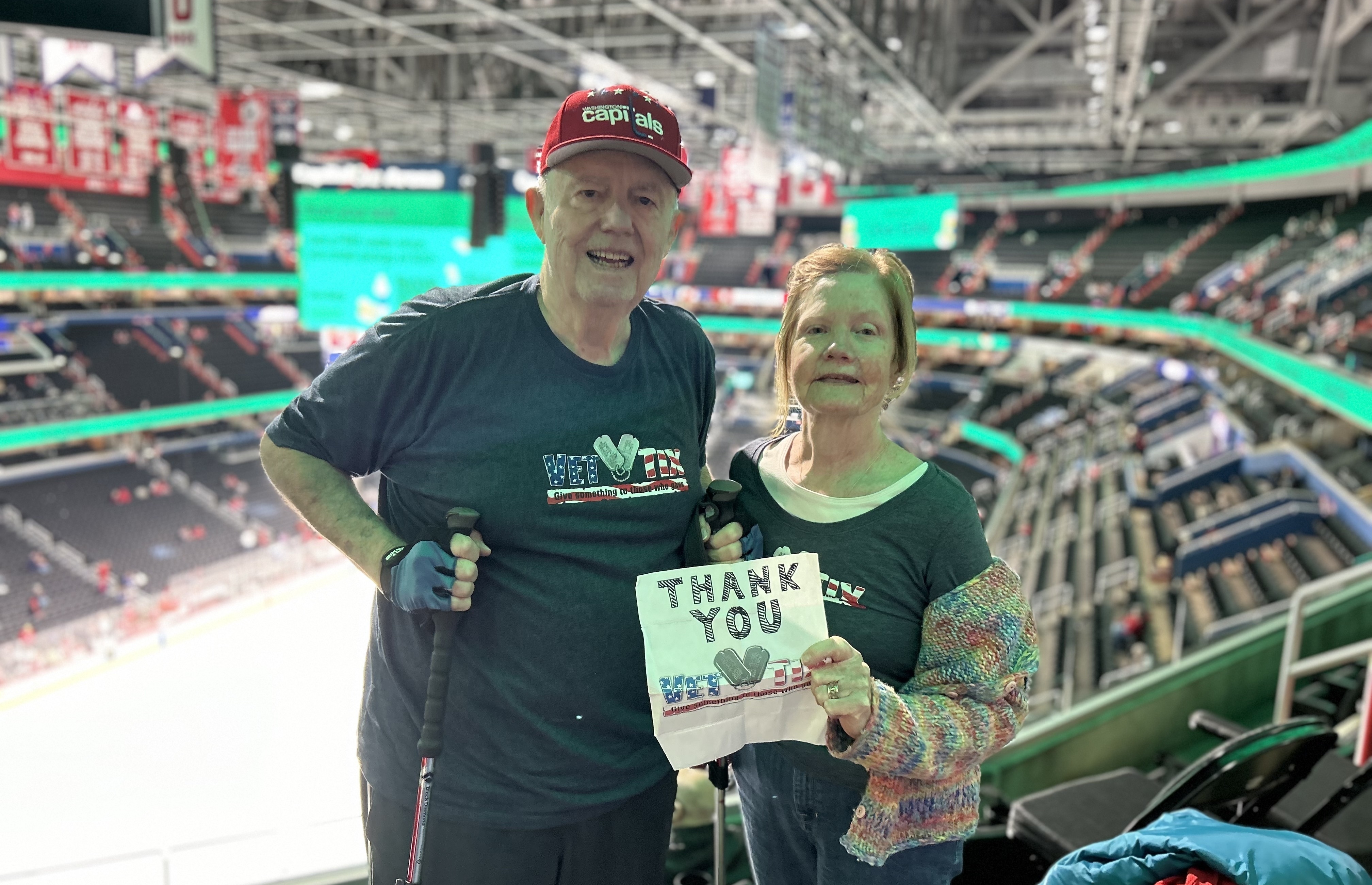 Dear Monumental Sports, Thank you for the tickets to the great hockey game last night. It was good to see the Caps win. And the support to the Military Night was terrific. Thanks again. John and Ann