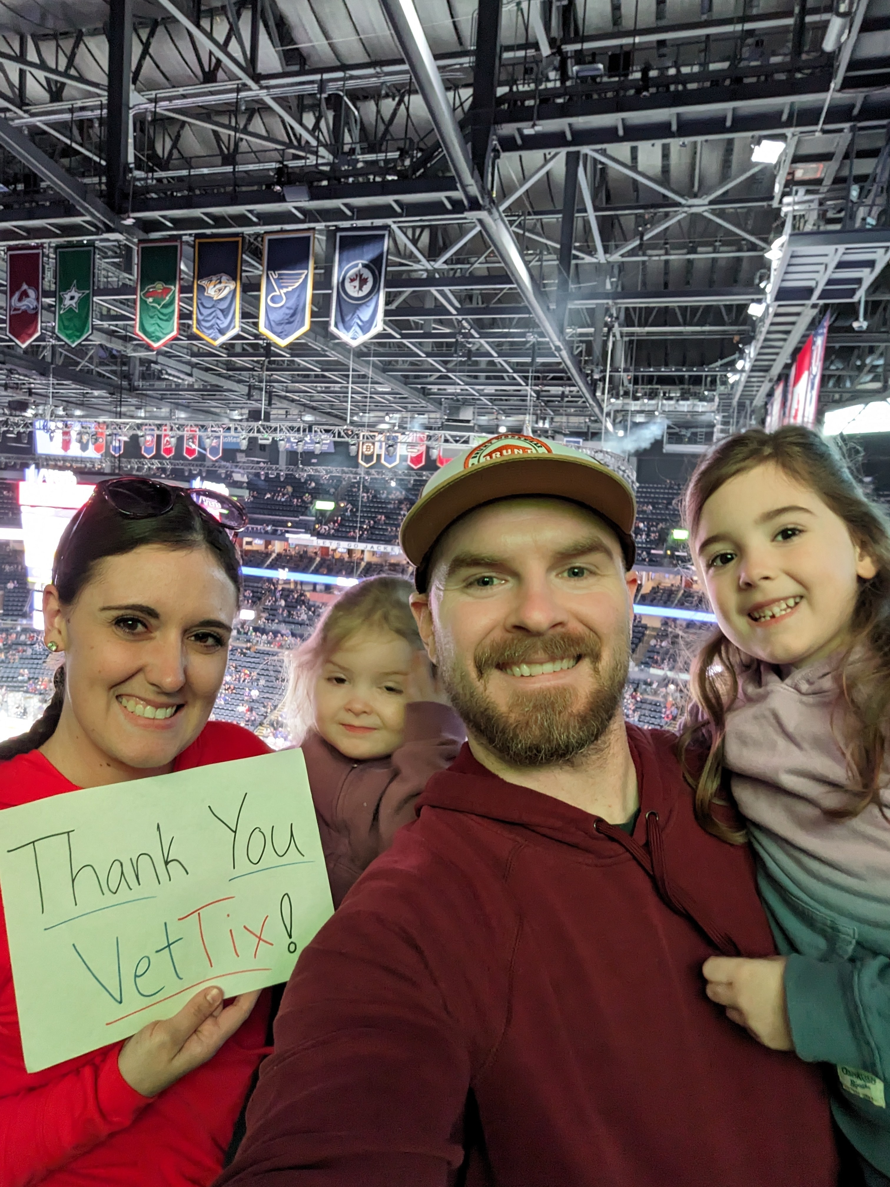 Columbus Blue Jackets and VetTix, What a great opportunity to take some family to an exciting game. We're all grateful for the tickets and enjoyed the Jackets' victory! Thank you.