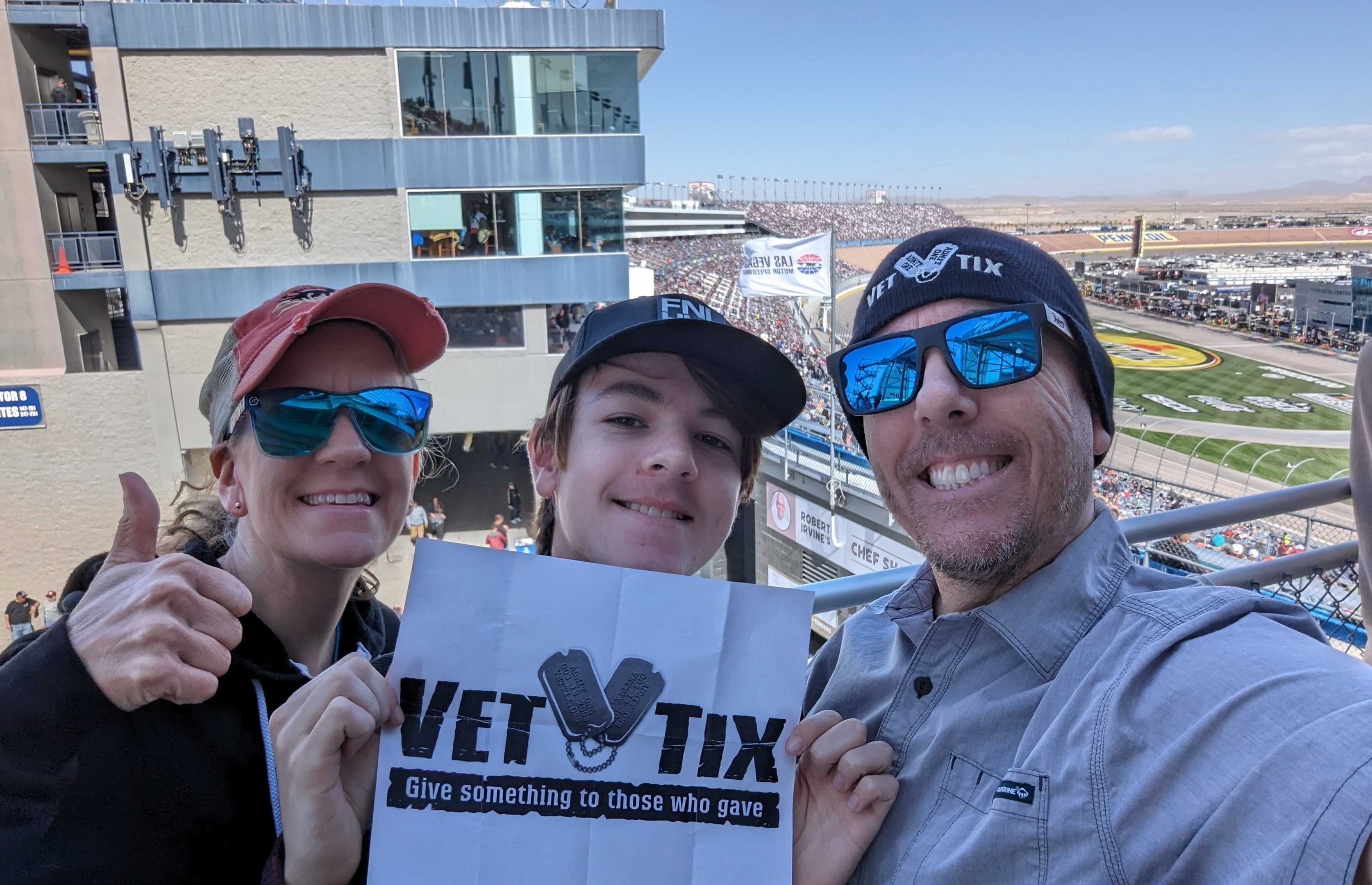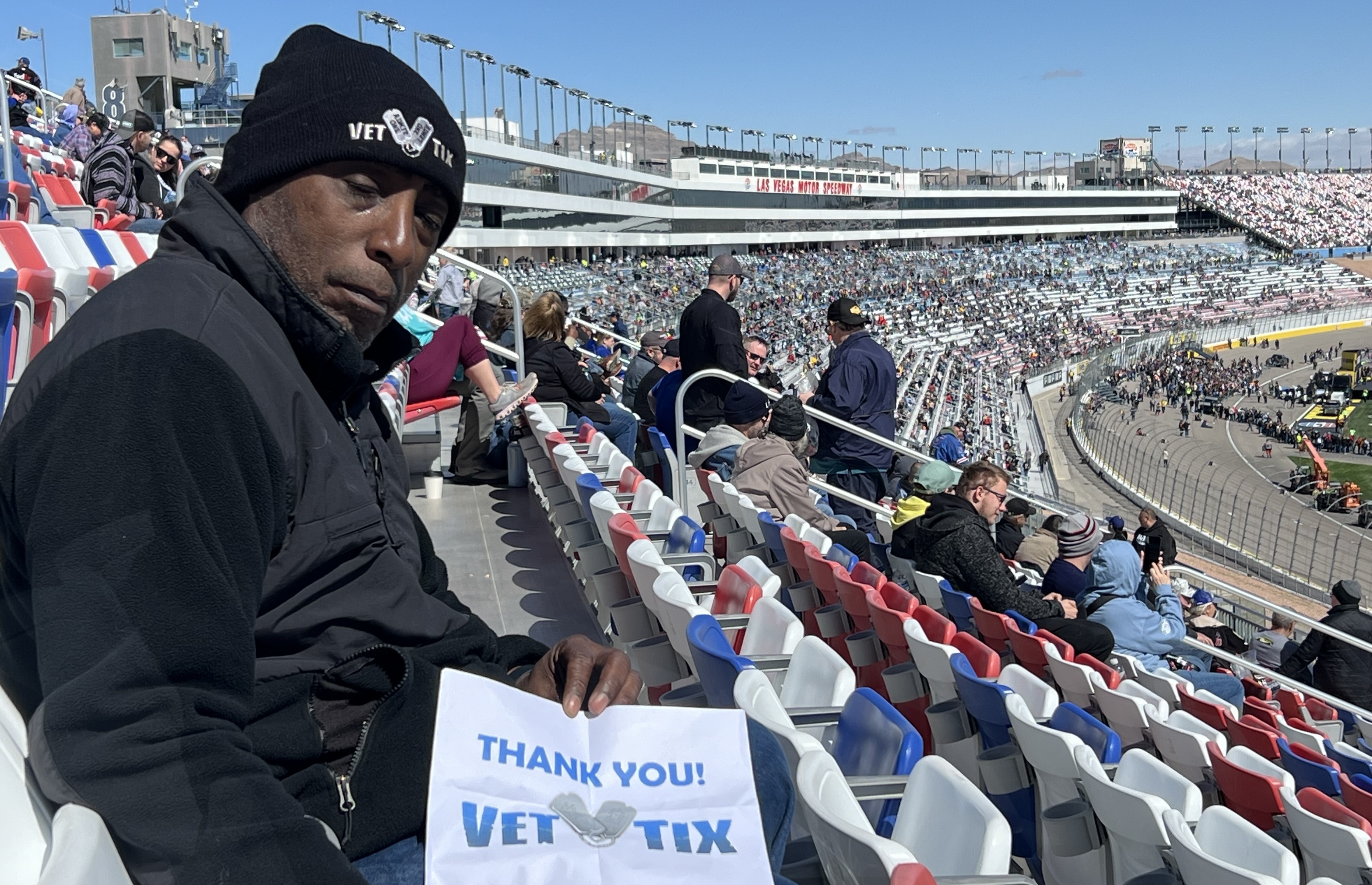 Thank you Vet Tix, even though it was a little chilly, the skies were blue and the race was awesome. This was my first time to the Las Vegas Motorspeed Way and it did not disappoint. Thanks again.