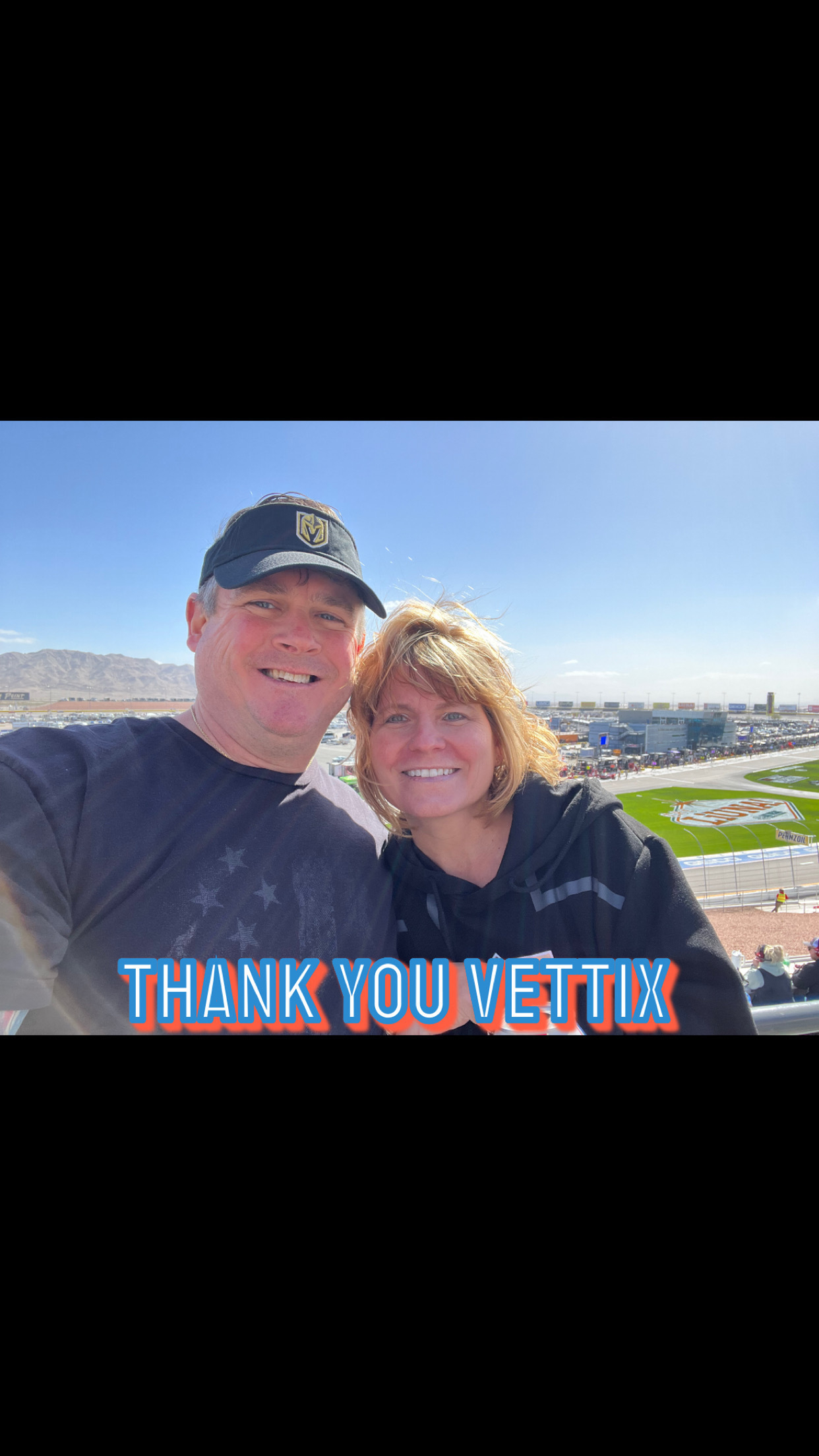 Veterans Tickets Foundation, thank you for the ticket to go to NASCAR Pennzoil 400 at LVMS. Great racing, great friends, great venue. Loved the chance to see some home town drivers racing at their home track.
