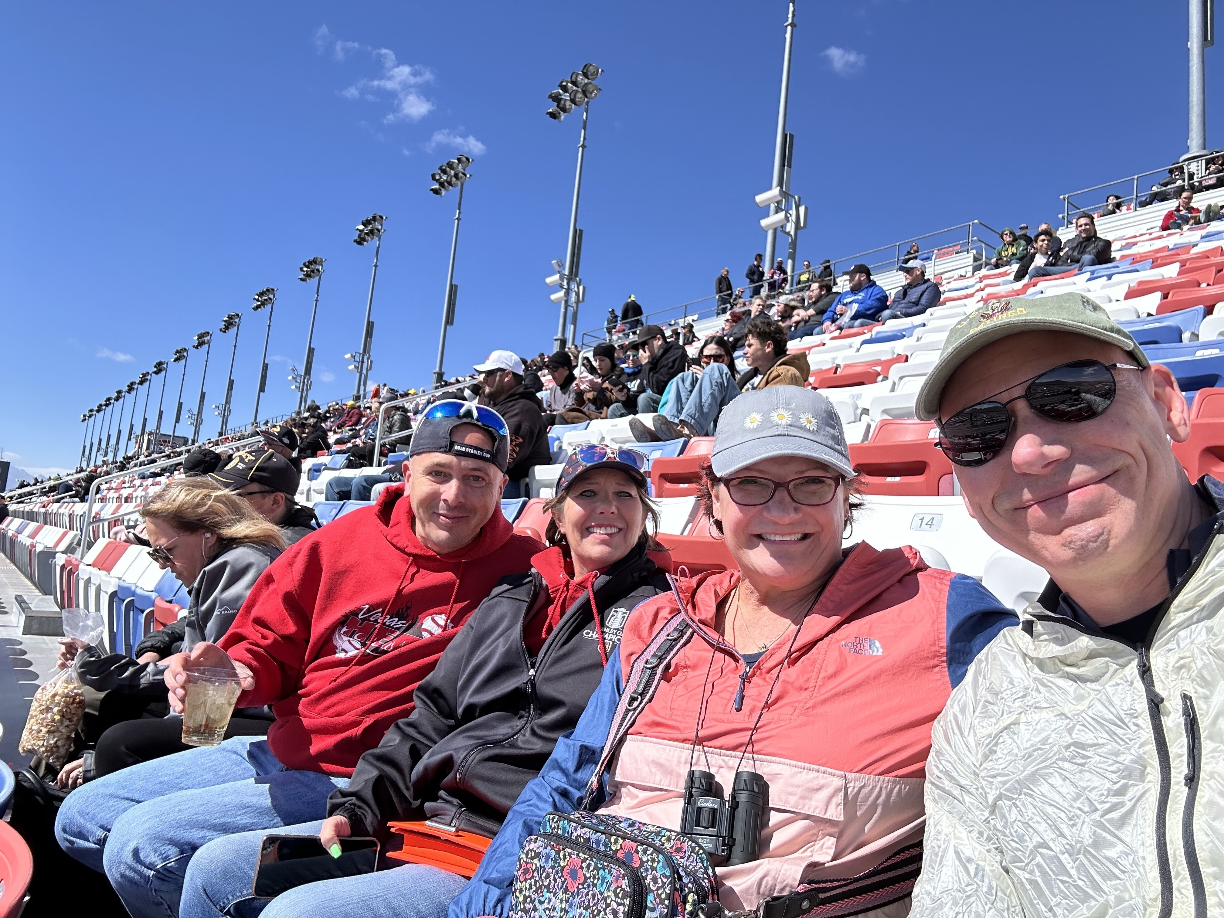Perfect day at race. We were a little concerned about our reserved seats but we had a great view of the entire track. Las Vegas Speedway was great. Thank you VetTix.