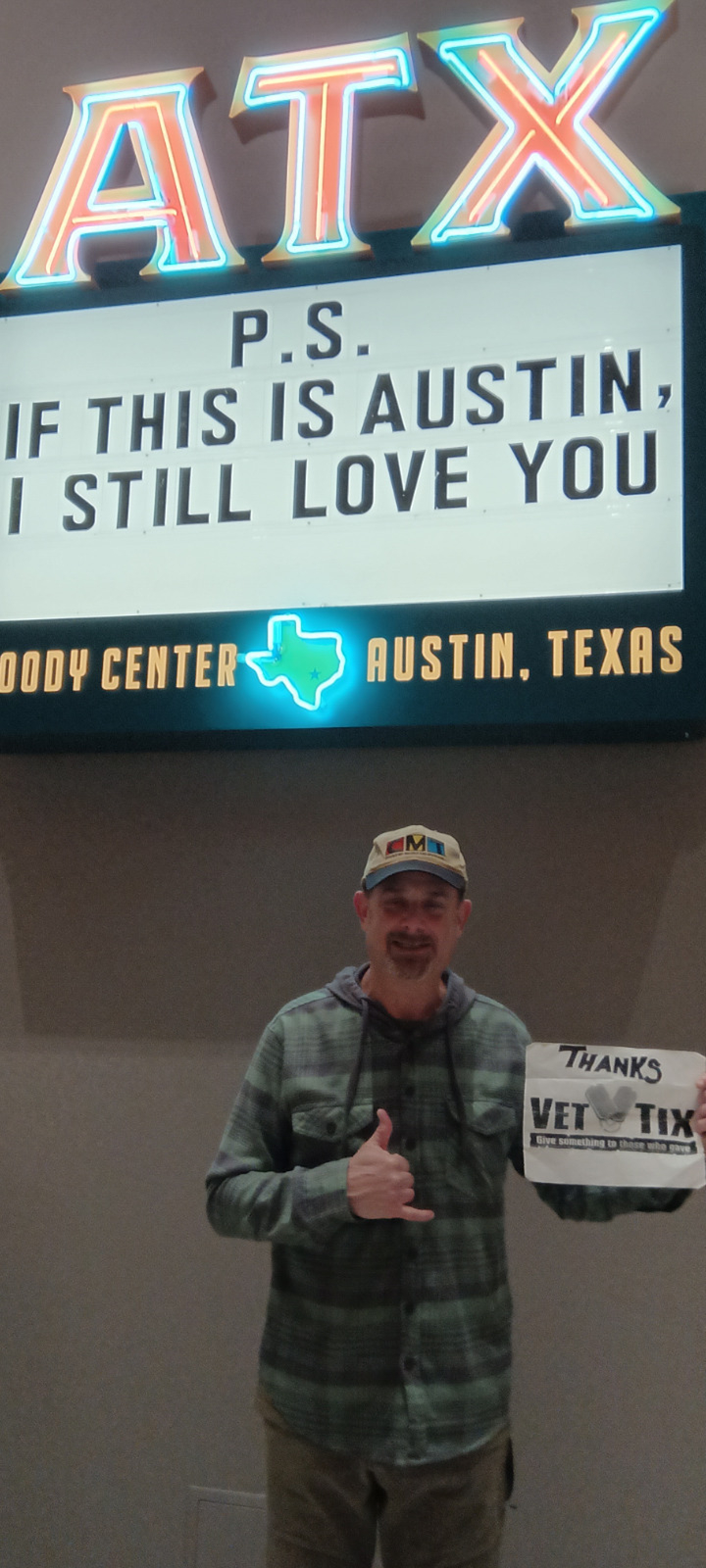 Thank you Vet Tix! Blake Shelton was a great show.! We were at the top of the venue so the picture shows the wall. It didn’t matter as there is t a bad seat at the Moody Center and the music was amazing. I do have more pictures of the concert but with me in the photo.