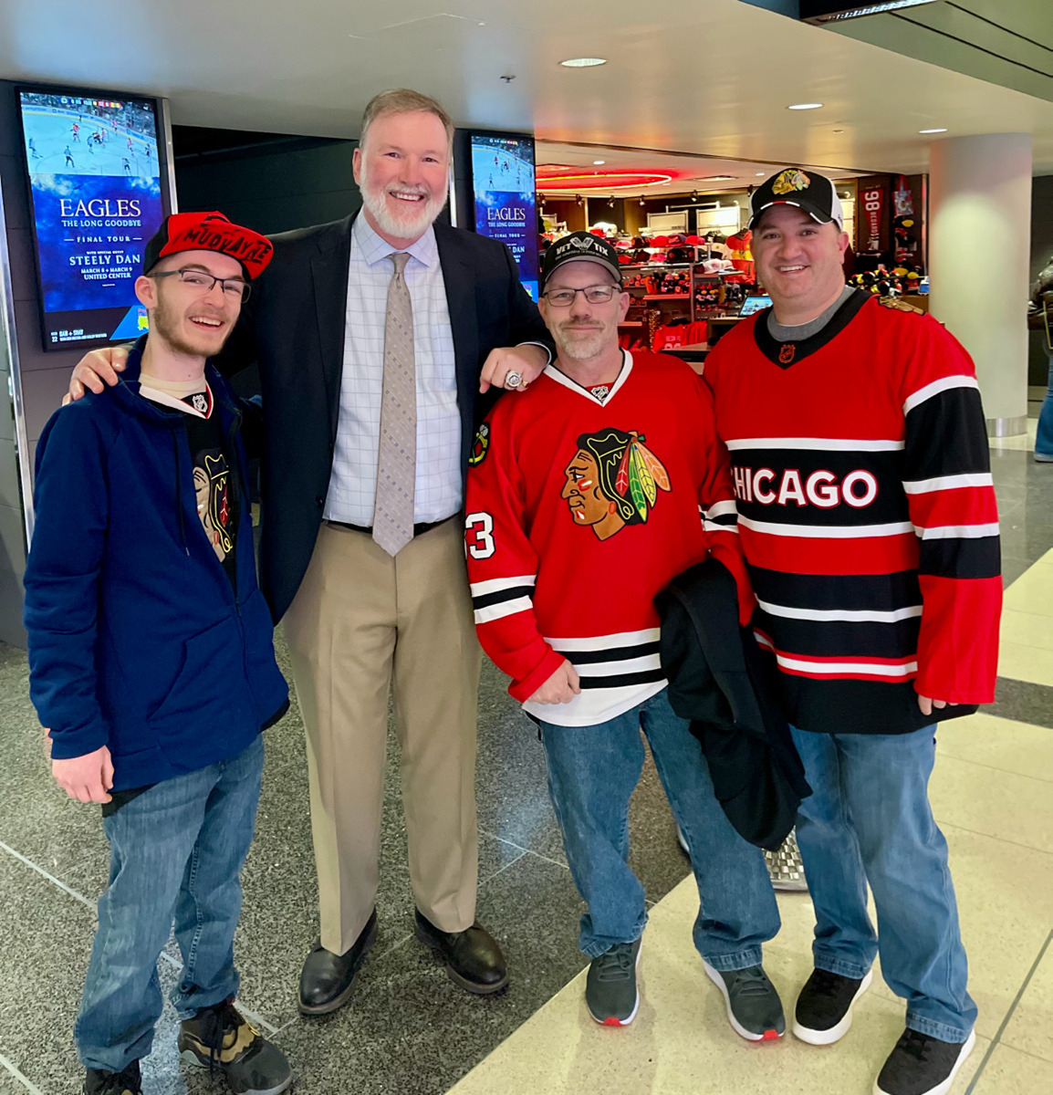 Thank you so much for the tickets! The seats were great and my 10 year old son enjoyed his first Blackhawks game! My father in law was there as well (not in photo) and he used to scrimmage the Blackhawks in the 70s when he played junior college hockey.