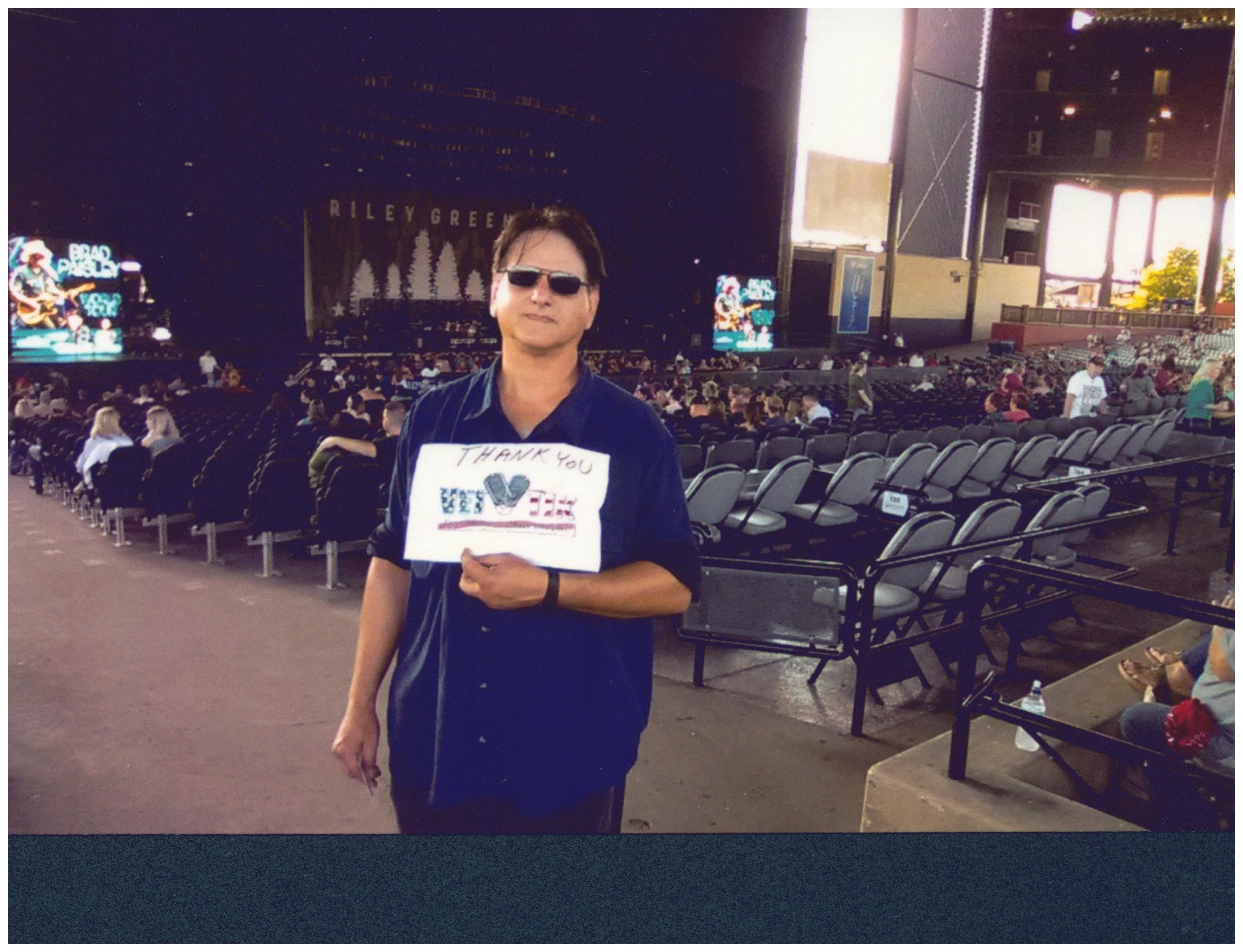 I wish to thank, the donors ( live nation ) and ( vettix) , For allowing me to be able to get a ticket to see a great country music concert. Staring Brad paisley , with two other great performer's Chris Lane and Riley Green . they all performed with a Enthusiastic Intensity towards there fans. Again thank you so much..... I still have not recieved a message on why? my account has been flaged ... and if it was dealing with when i went to the adam sandler concert..... live nation had printed 8 tickets with me name and another 4 tickets with someone elses making 12 tickets/people in the same seats on that night..... i used the original 4 tickets that i requested for that concert, and while sitting in are seats 4 other persons came to my seats with the same tickets/seat numbers....... the extra tickets that live nation had for me was never taken buy me and i told them they had to many tickets under my name.