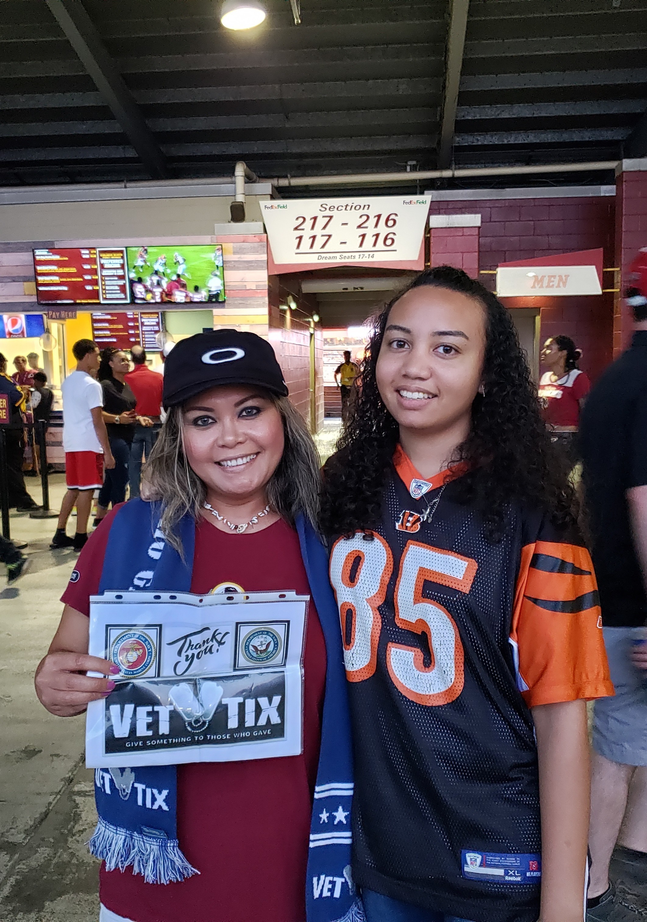 Thank you Vet Tix for the opportunity to take my daughter to see her favorite team, Cincinnati Bengals play the Redskins. She had a great time and really enjoyed it.