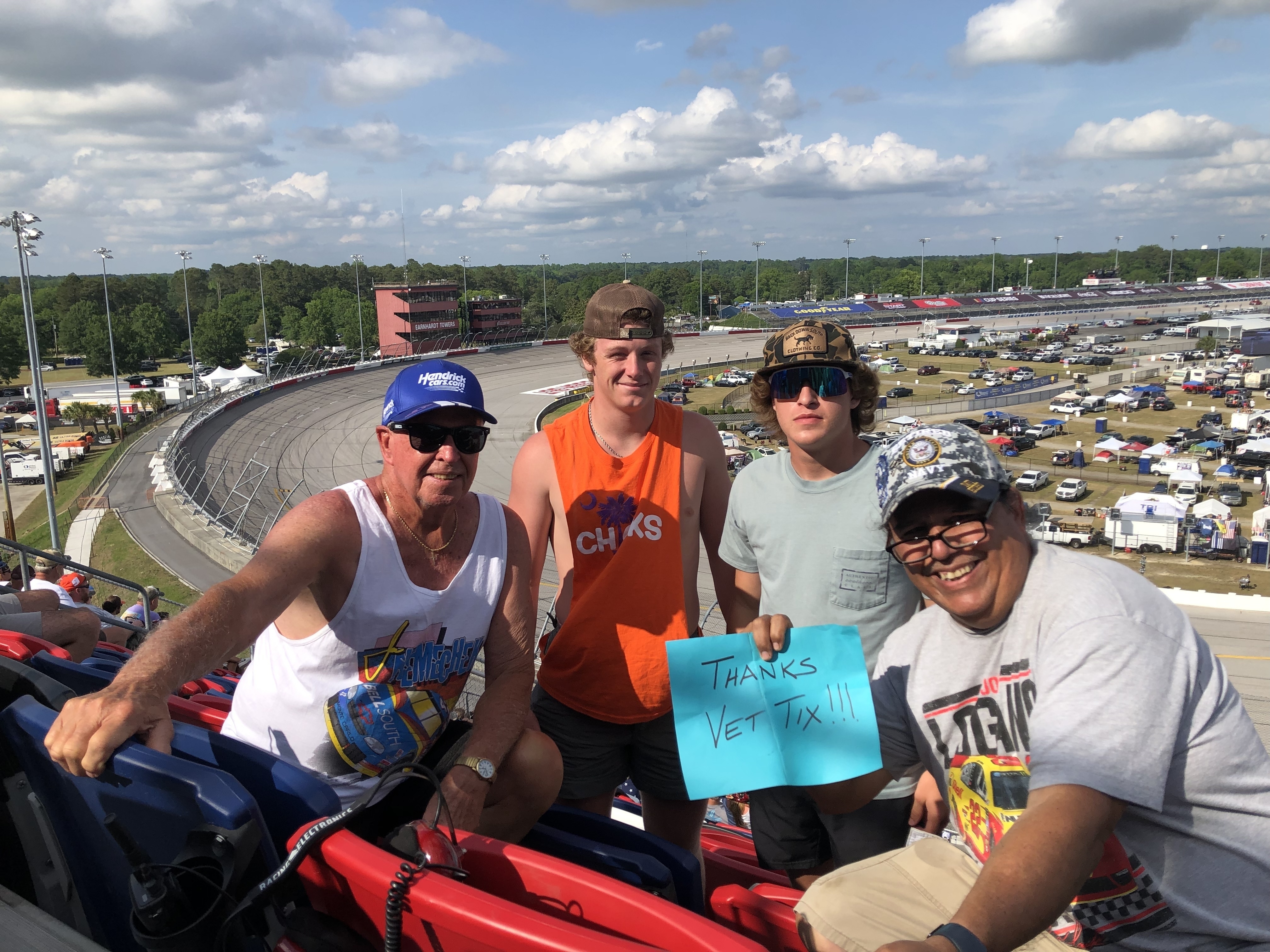 Veteran Tickets Foundation Purchases, Darlington Raceway, a thousand thank you’s isn’t enough for all that you do for our Vet’s but here’s another one!! Thank you again for allowing me to entertain my friends!!