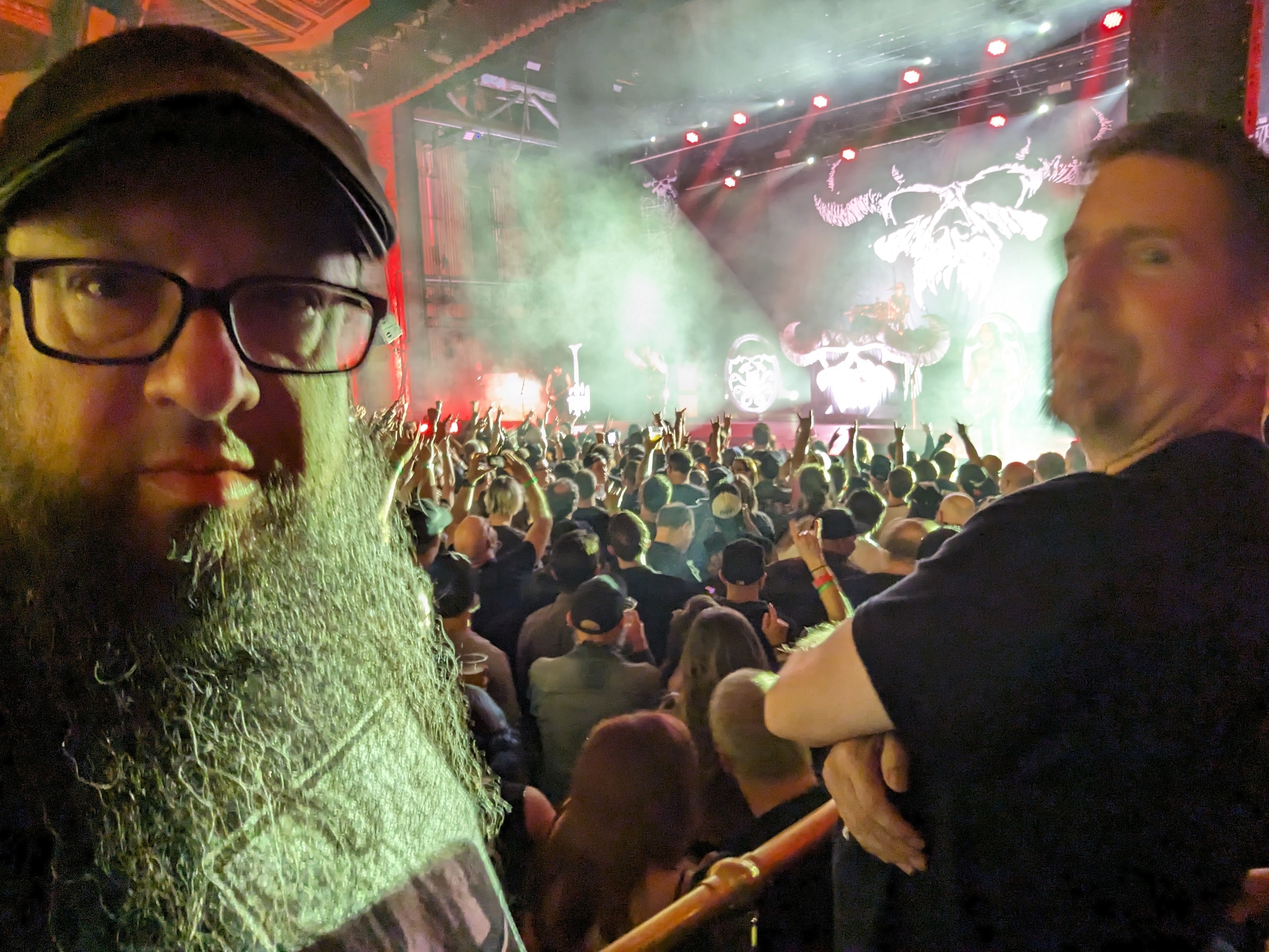 THANKS VetTix!!! This show was everything you'd expect. Entertaining. Ridiculous. Ladies who looked like they used to be strippers. Guys who looked like they wore Z-Rock dog tags. A 70 year old singer threatening people from the stage. And just in case you forgot where you were a stage set with your logo on it in 10 different places (there's 2 on top of the amps in the shadows). Eleven if you count his belt buckle. It looked like a yard sale up there.