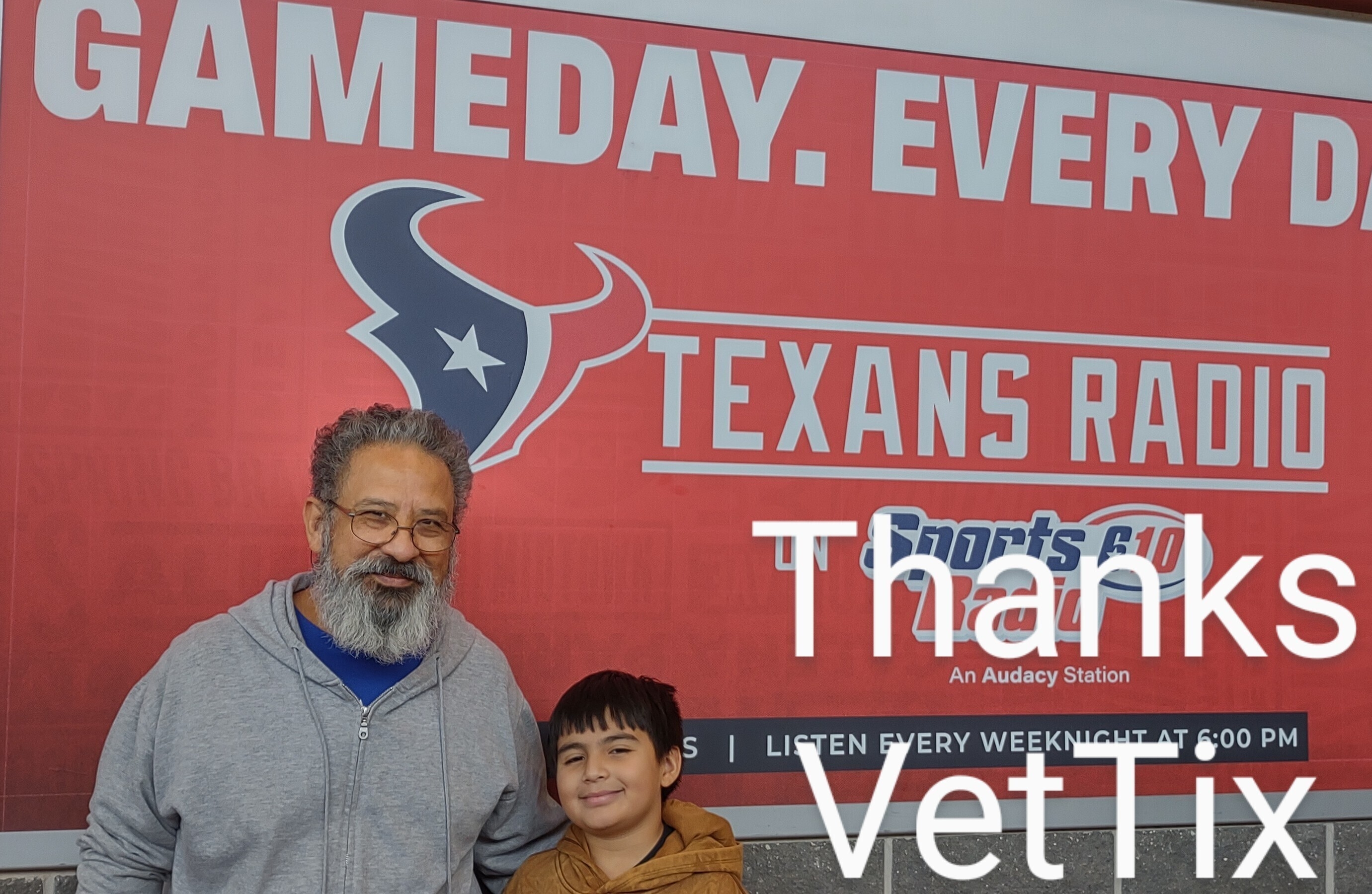 Had a great time watching the game with my grandson and son in law, first live professional game for us greatful to have been able to with them. Thanks to the donors and thank you Vettix. Unfortunately forgot my sign but still acknowledged you in the photo.