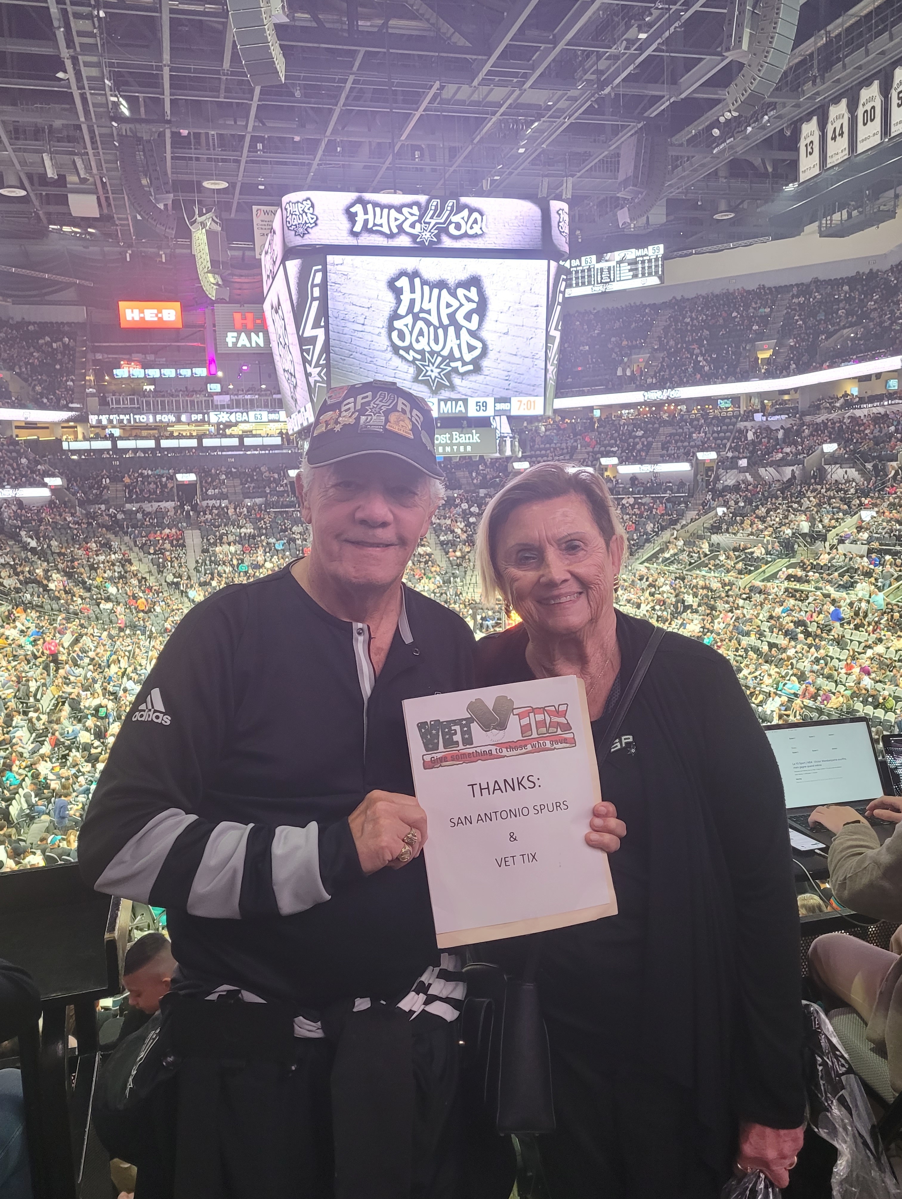 My wife and I had a fun evening watch what is sure to develop into a solid and competitive team in the near future! Many thanks to the San Antonio Spurs ans Vet Tix for making the magic happen. Gilbert and Margaret Cadena