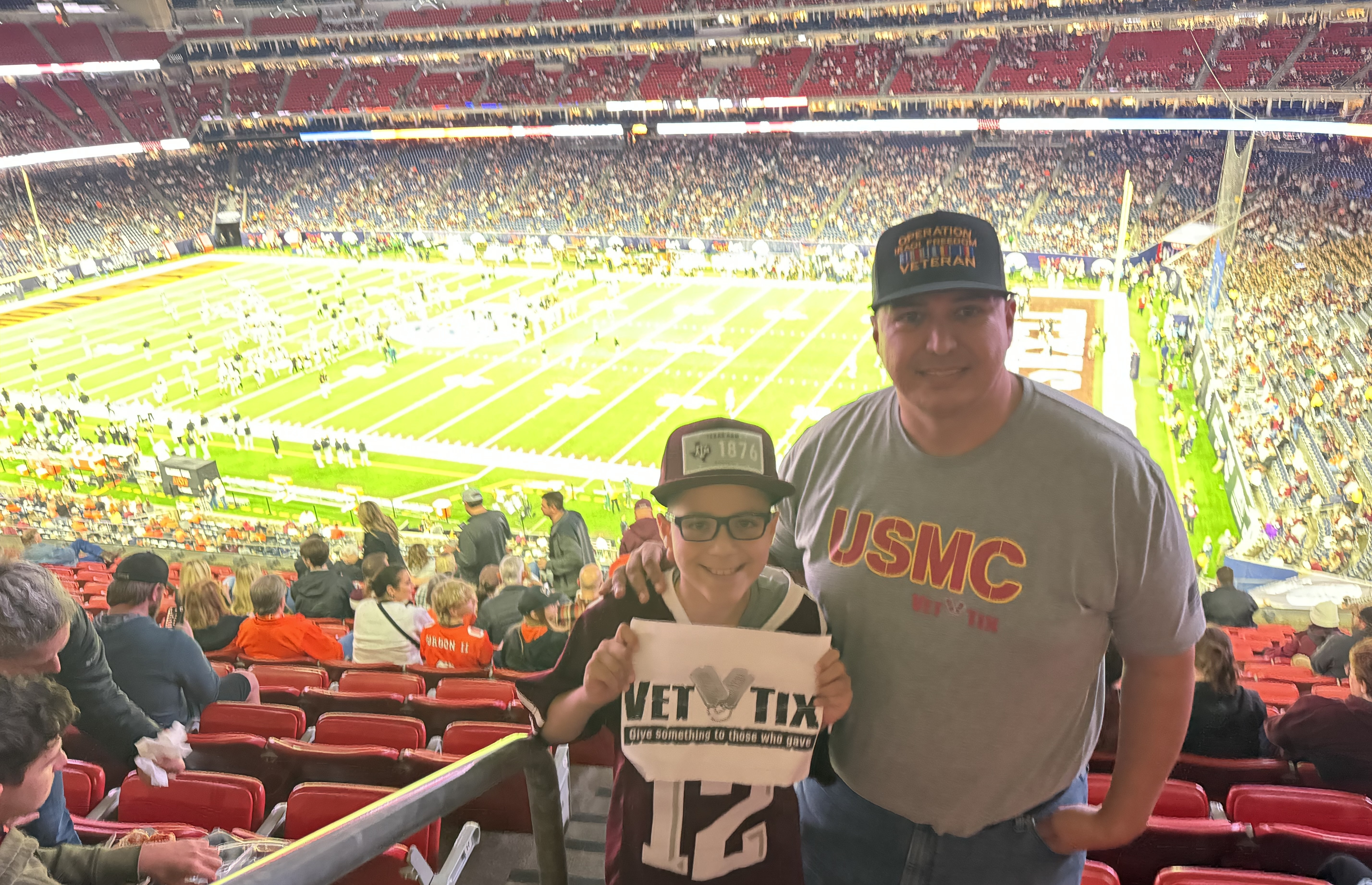 Thank you very much to OSU, Lone Star sports & entertainment and the Texas Bowl for donating these tickets. The seats were in a premium location! We enjoyed ourselves to the fullest. I proudly showed off my VetTix USMC shirt at the game.