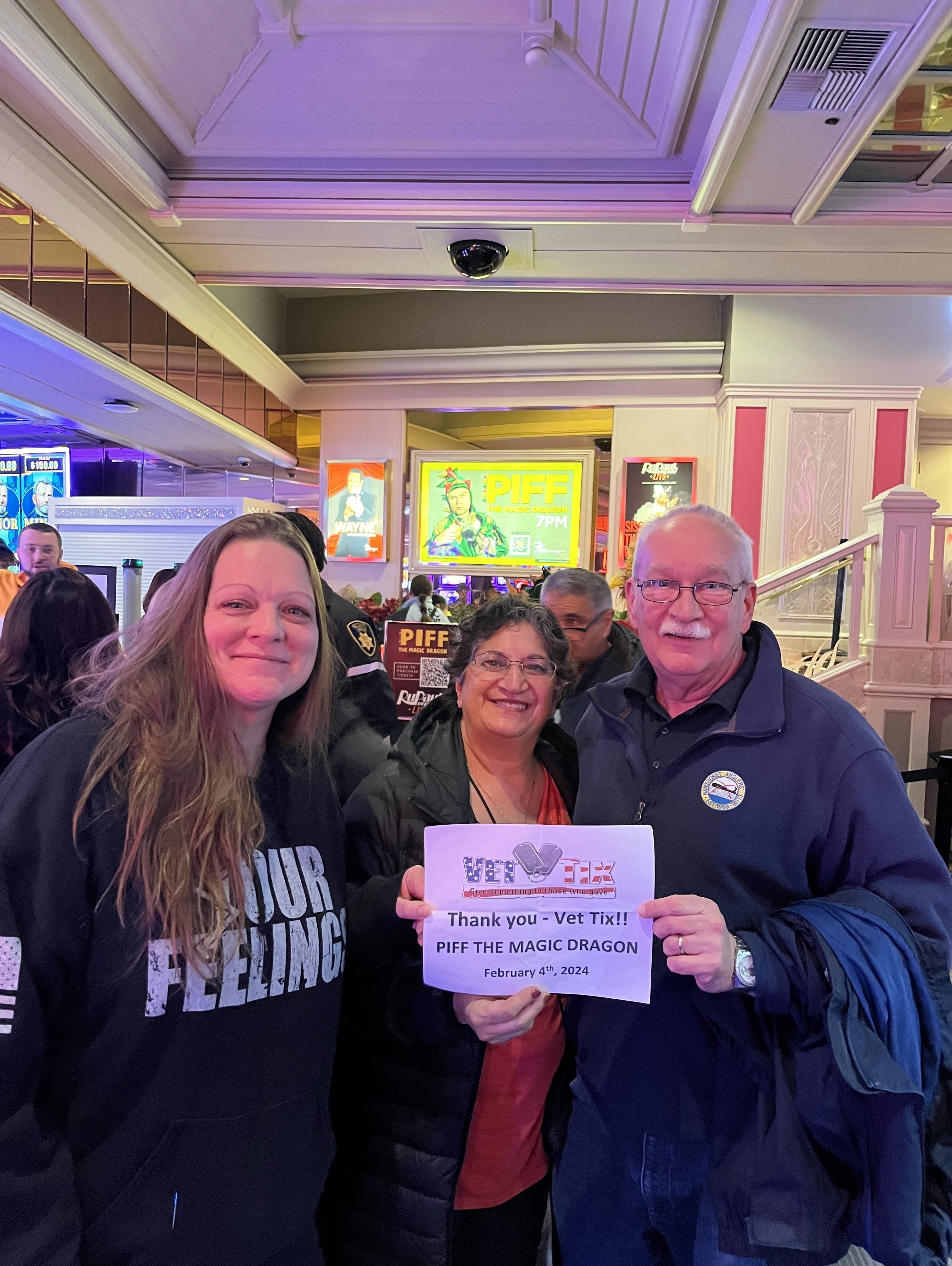 Thank you VetTiks and Stabile Productions for the tickets to Piff the Magic Dragon. This was a really funny show. We enjoyed Piff’s humor, sarcasm and audience interaction. My family and I thank you again for the opportunity to see this show. Sincerely -Bill Henderson and Family